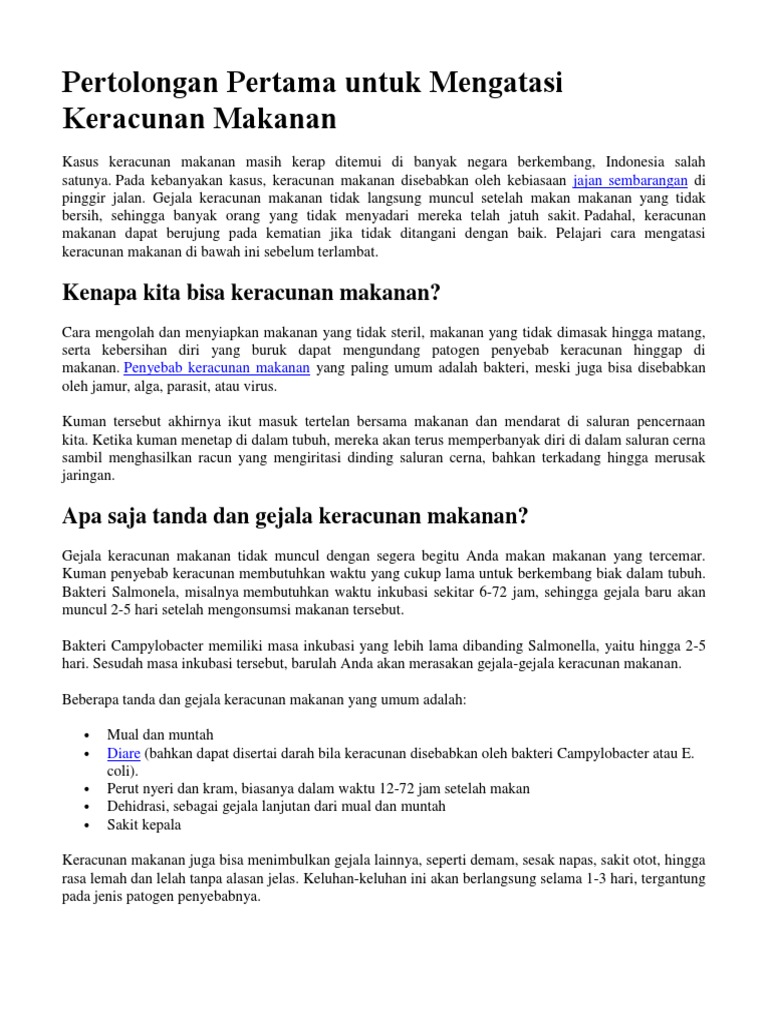 Ketahui langkah-langkah apa yang bisa dilakukan jika seseorang. Jika mengalami salah satu dari gejala tersebut segera hubungi dokter untuk mendapatkan penanganan yang tepat. Mengertilah apa yang menyebabkan keracunan makanan.